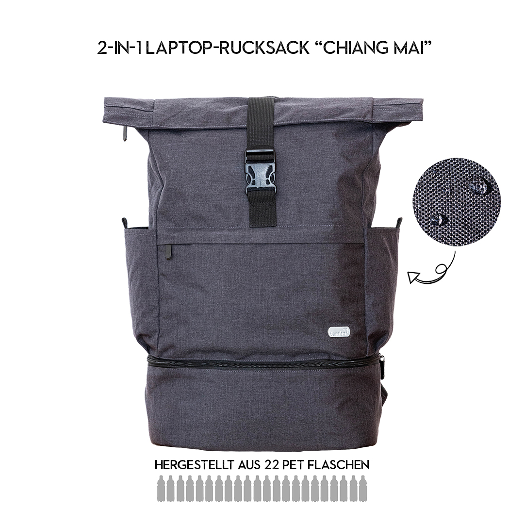 Der Chiang Mai Laptop Rucksack ist die perfekte Kombination aus Laptop – Tasche und Rucksack, einfach elefantenstark & multifunktional einsetzbar.