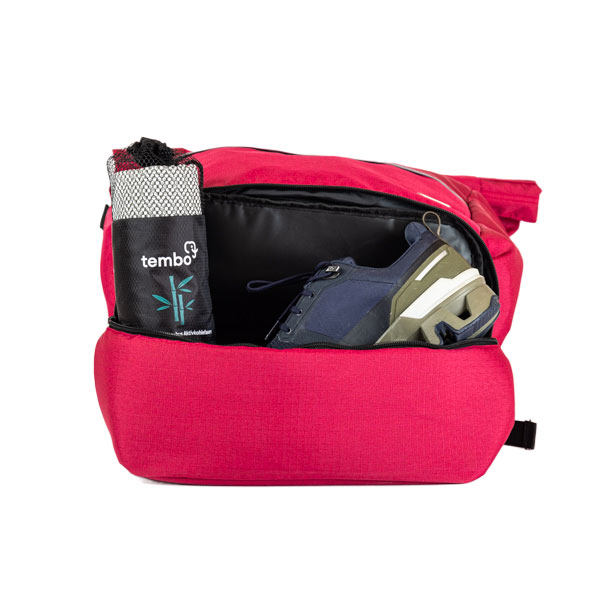 - Das untere Nassfach ist abgetrennt vom oberen Teil und hält deine Kleidung und andere Gegenstände trocken. So kannst du feuchte Sachen sicher vom Rucksack getrennt transportieren, ohne verschiedene Taschen verwenden zu müssen. Es kanı mit einem nassen Tuch einfach ausgewaschen werden.
